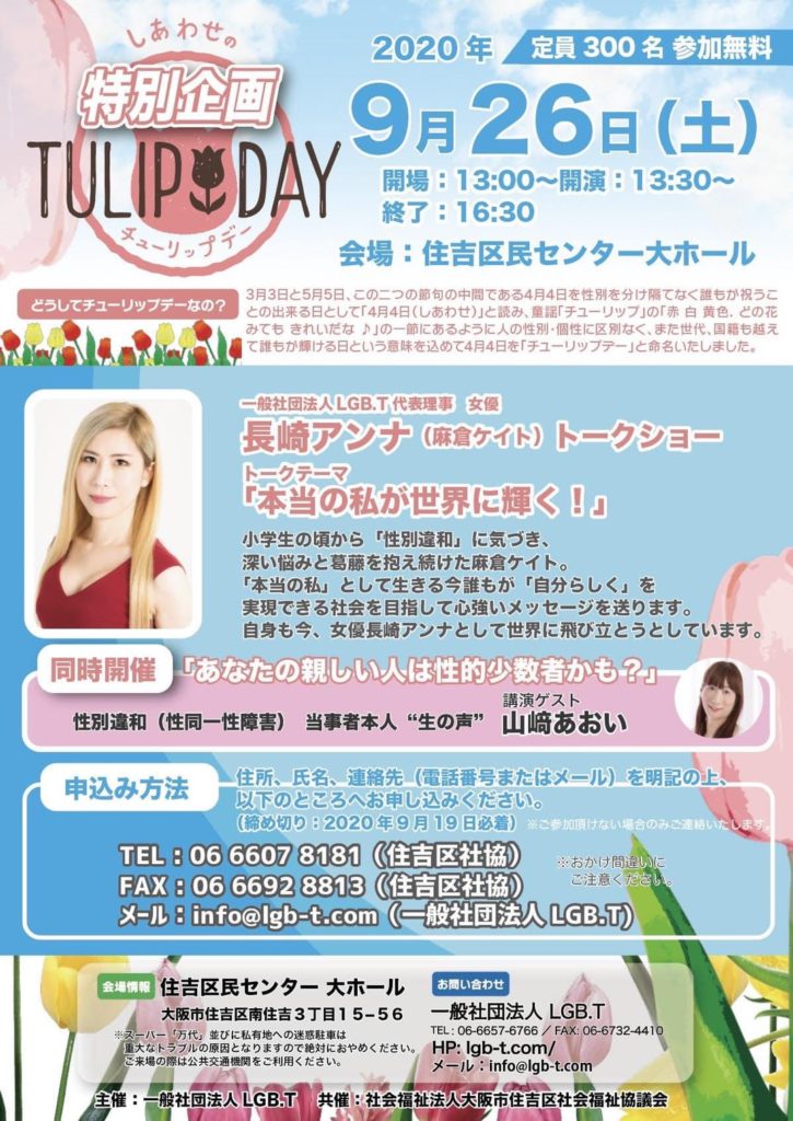 【長崎アンナ】9.26「幸せのチューリップデー」トークショー決定