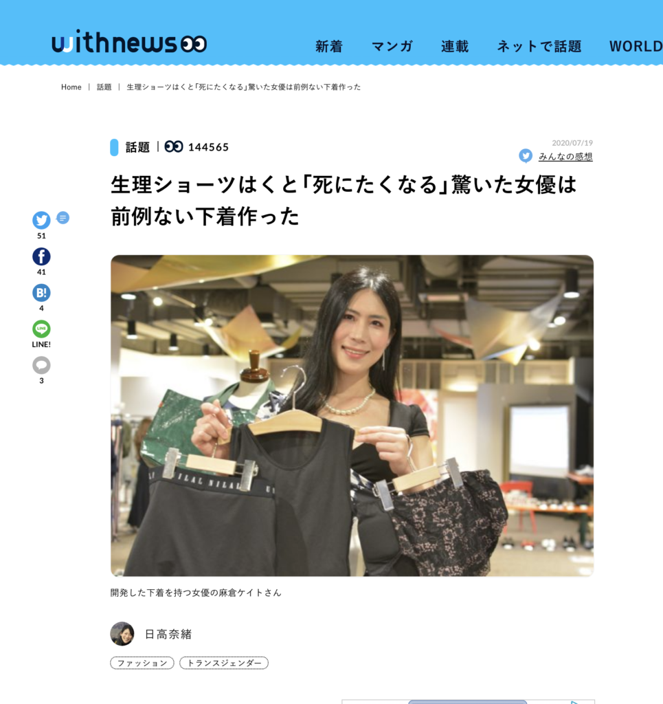 生理ショーツはくと「死にたくなる」驚いた女優は前例ない下着作った+-+withnews(ウィズニュース)